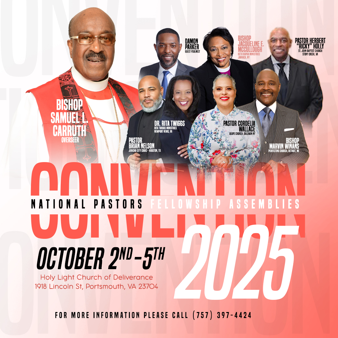 Get ready for a life-changing experience at the National Pastors Fellowship Assembly Convention 2025, hosted by Holy Light Church of Deliverance under the leadership of Bishop Samuel L. Carruth!